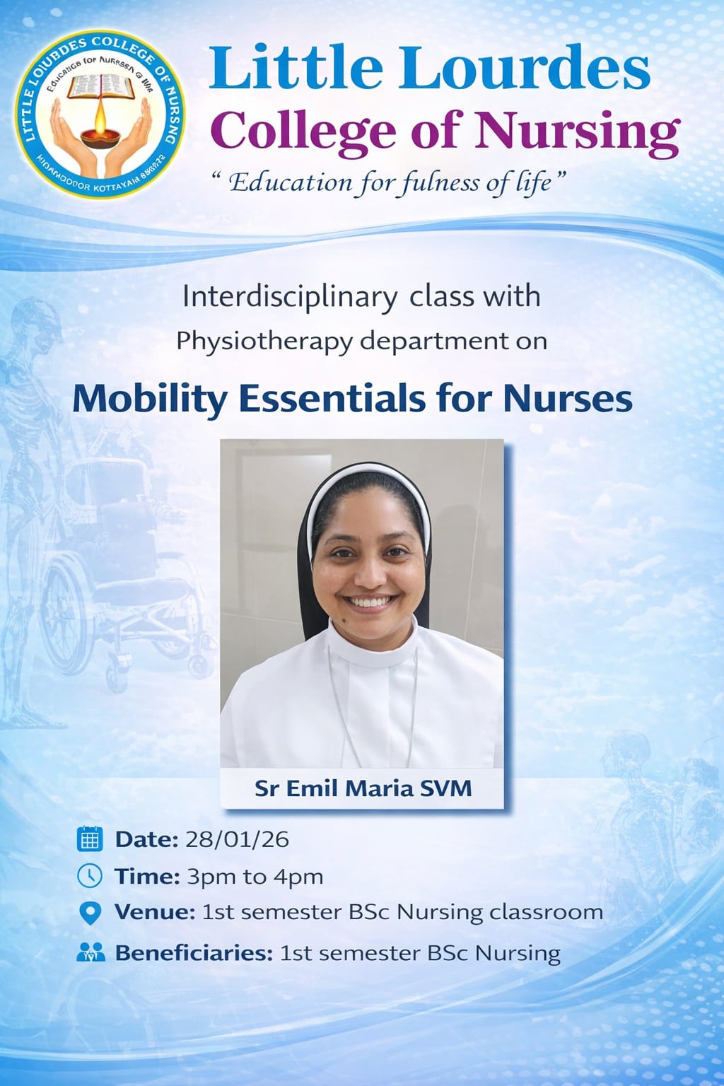 The dream of Rev. Msgr. Cyriac J Mattathil, the founder of Little Lourdes Charitable Institutions, was fulfilled on 3rd August 2013. A great salute to Rev. Msgr. Cyriac J Mattathil, our founder. On that great day, 3rd August 2013, the college of nursing was inaugurated. The Little Lourdes educational institution has a strong educational background since 1979. It started with JPHN course, followed by diploma in General Nursing and Midwifery and B.Sc Nursing Degree Programme was started from 2013 onwards. This institution is run by SVM sisters of Kottayam Diocese. Our parent hospital is Little Lourdes Mission Hospital.